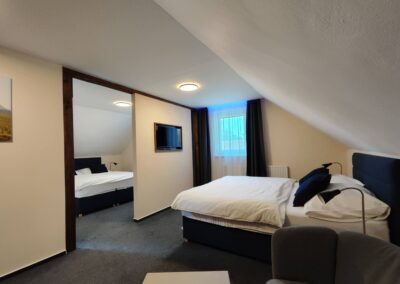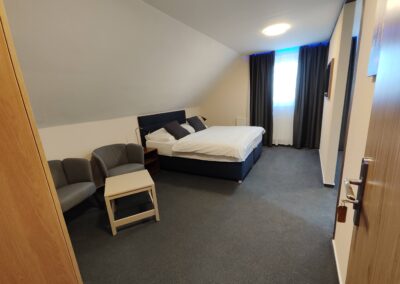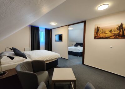 Podívejte se na naše útulné a komfortně zařízené pokoje. Každý z nich je navržen tak, aby vám poskytl maximální pohodlí a klid během vašeho pobytu. Vychutnejte si elegantní design, kvalitní vybavení a příjemnou atmosféru, která vám zajistí dokonalý odpočinek.